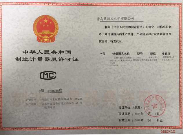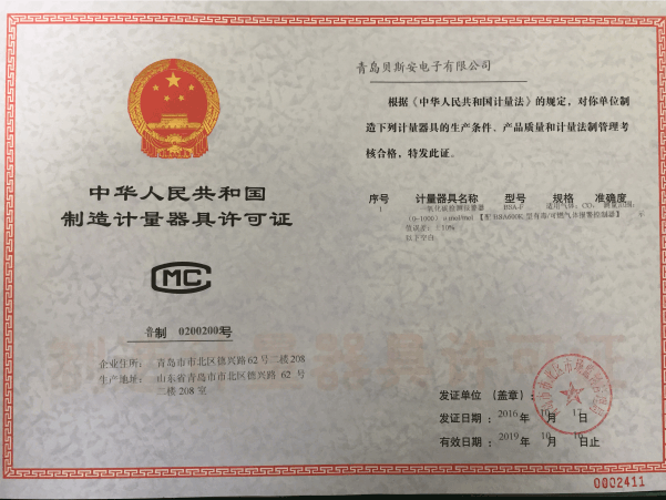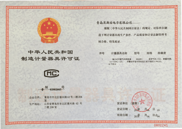 我公司是青島市具有國家質量技術監(jiān)督部門頒發(fā)的計量器具生產許可證的生產企業(yè);獲得國家防爆電氣產品質量監(jiān)督檢驗中心頒發(fā)的防爆合格證;獲得國家公安部消防產品合格評定中心頒發(fā)的消防產品形式認可證書。
